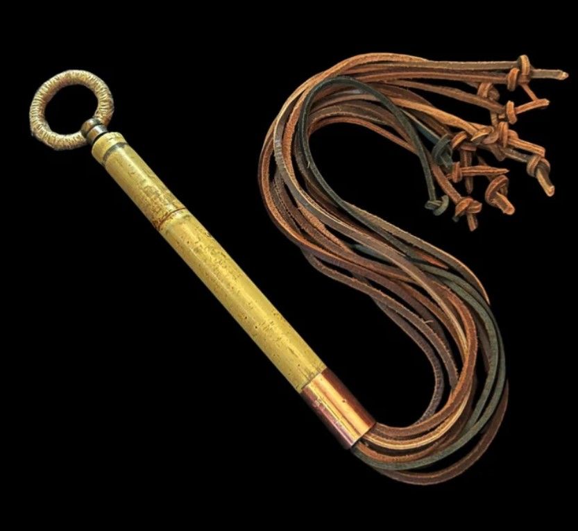 - picture a flogger whip combo, leather, need some space (more if a dragon tail)