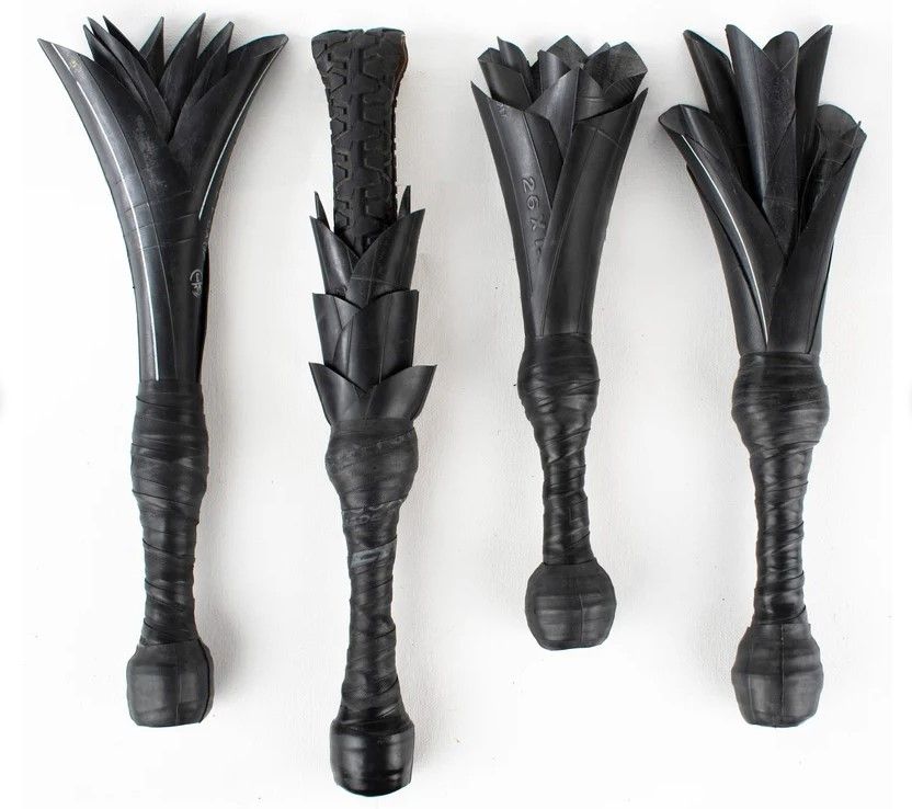 - leather wrapped (sometimes padded) stick-shape, often with a hard core of pvc or metal